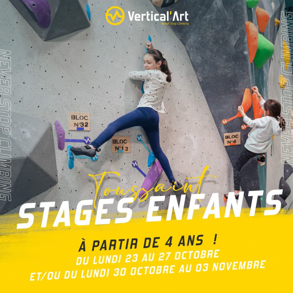 On attend vos enfants nombreux sur les blocs Vertical’Art pendant les vacances de la Toussaint pour profiter des derniers beaux jours et de nos blocs, que ce soit pour les stages ou pour se défouler à volonté !