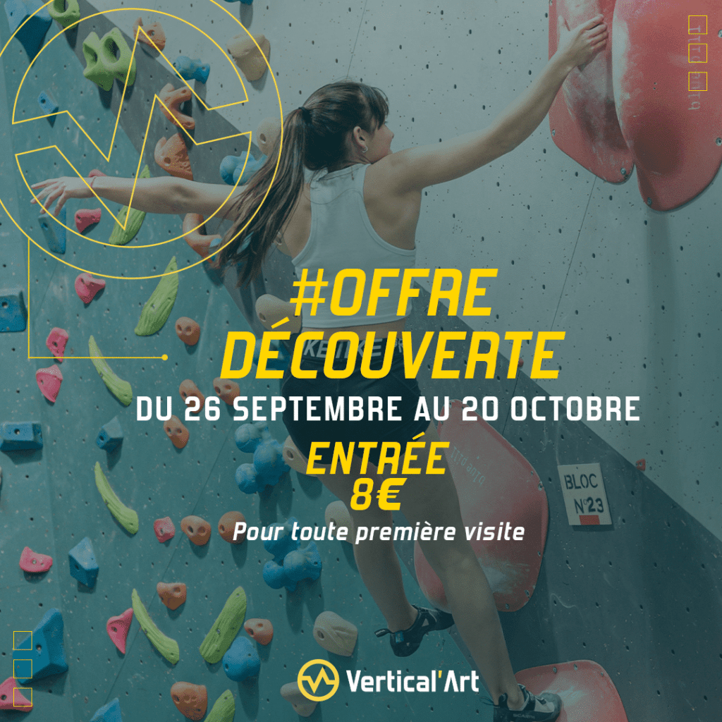Découvrir l’escalade ou ne pas découvrir l’escalade, telle est la question. Et bien avec Vertical’Art Saint-Quentin-en-Yvelines, cette question, elle est vite répondue grâce à notre nouvelle offre spéciale première visite ! A partir du 26 septembre, la première séance d’escalade sera à moitié prix pour tous les nouveaux grimpeurs dans notre salle de bloc.