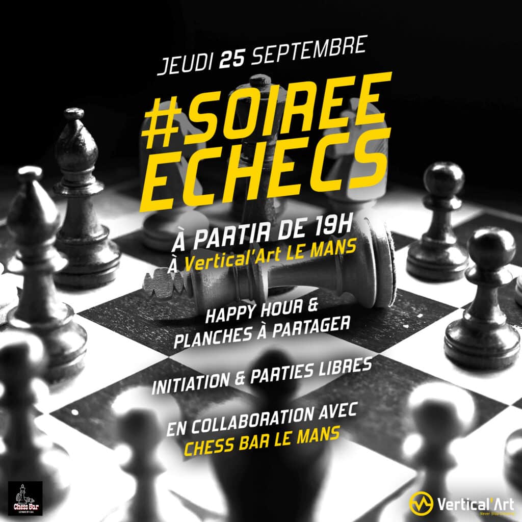 📆Le jeudi 25 septembre, Vertical’Art Le Mans s’associe au Chess Bar Le Mans pour vous proposer la toute première édition de notre soirée Échecs.